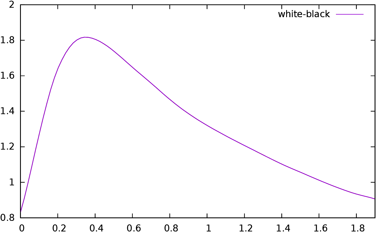 In this subsection we are going to see how computing the expected result of a game by using Ferreira’s distribution method (presented in section 3.3) fares. Thus, for each game, I compute the vectors RW(δ) and RB(δ) of the distribution of δ for each player for the given game, and the convolution of the two distributions, which gives us the distribution of RW−B. Then I compute the scalar product of this vector with the vector describing the expected gain, which is in Ferreira’s paper e=(0,⋯,0,0.5,1,⋯,1). The result should be the expected outcome of the given game.