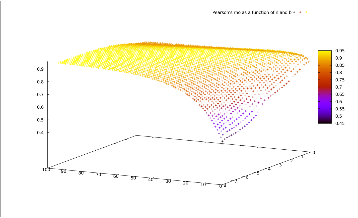 There are many tuples (n0,b) for which the correlation is around 95%.