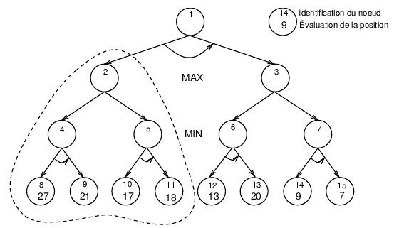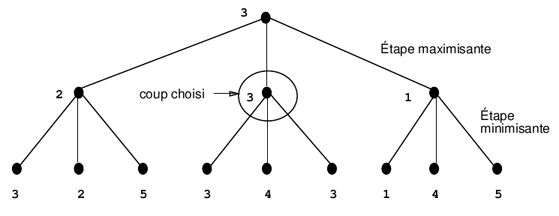 Un exemple de parcours par un algorithme minimax est fourni sur la figure 1.1.