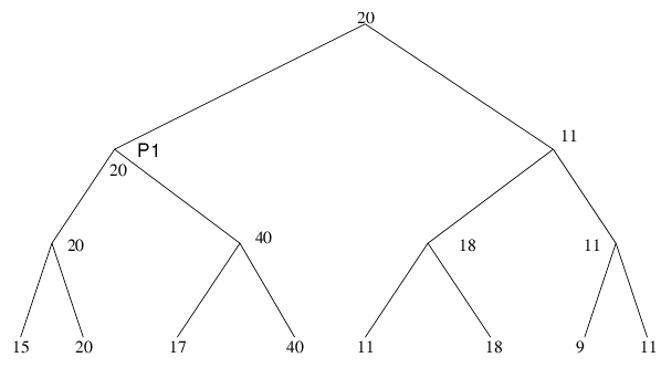 Nous allons voir cela sur un exemple pratique. Soit l’arbre minimax représenté sur la figure 1.5. Les informations stockées pour la position P1 sont représentées figure 1.6.